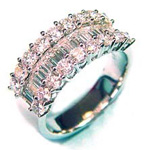 18k White Gold Three Row Diamond Ring Featuring Fifteen Baguette Cut Diamonds Totalling to 0.72ct Eighteen Brilliant Cut Diamonds Totalling to 1.45ct,Total carat weight 2.17ct.