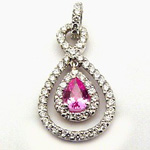Pink Sapphire and Diamond Pendant Featuring One Central 0.42ct Pink Sapphire and Sixty Seven Diamonds Totalling to 0.57ct set in 18ct White Gold. Previous