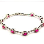 Ruby and Diamond Bracelet Featuring Nine Rubies Totalling 3.61ct and One Hundred and Fifty Eight Diamonds with a Total Carat Weight of 1.00ct set in 18k White Gold. Previous/Next